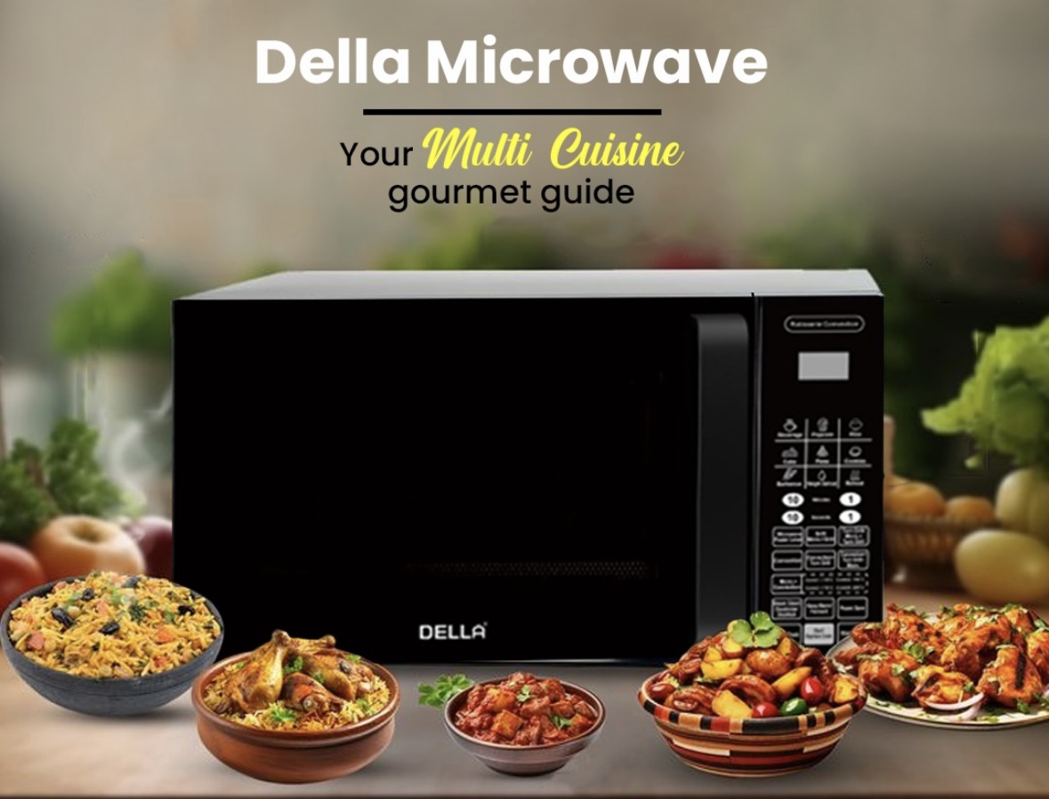 The Della Microwave Oven is a 30L microwave with convection and grill function, offering versatility for baking, grilling and reheating. It features inverter technology for cooking and energy efficiency, along with auto-cook menus for convenience. Ideal for medium-large families or kitchen.